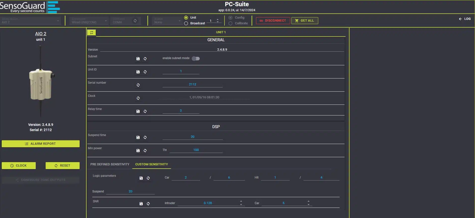 SensoGuard PC Suite is a user-friendly PC configuration utility for SensoGuard products. You can operate the PC Suite while connecting to a system locally (using a USB cable) or remotely from the Hub unit.